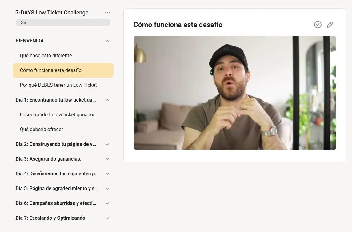 Eso es exactamente lo que enseño dentro del 7-Days Low Ticket Challenge.